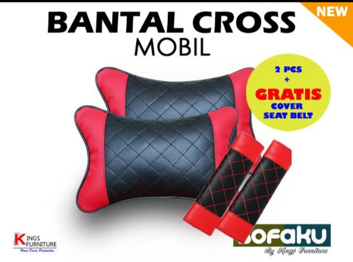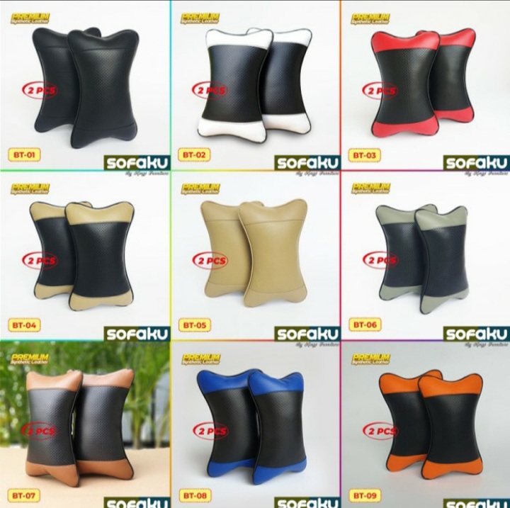 1 Set Bantal Jok Mobil Kulit Sintetis (Sepasang Kiri Kanan). Sudah Termasuk Cover Seat Belt (Gratis)