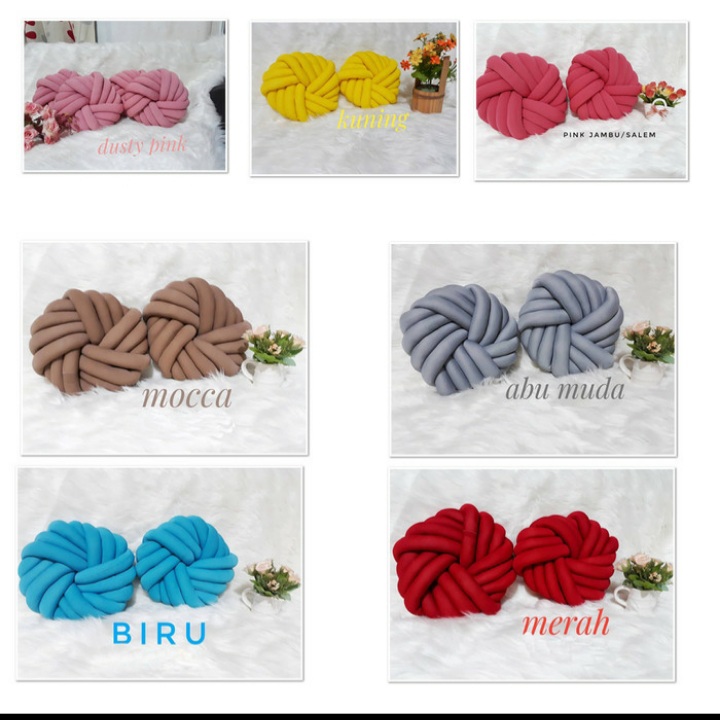 Holla ! Yang menyenangkan dengan kehadiran warna warni bantal knot untuk mempercantik tampilan sofa atau kamarmu.