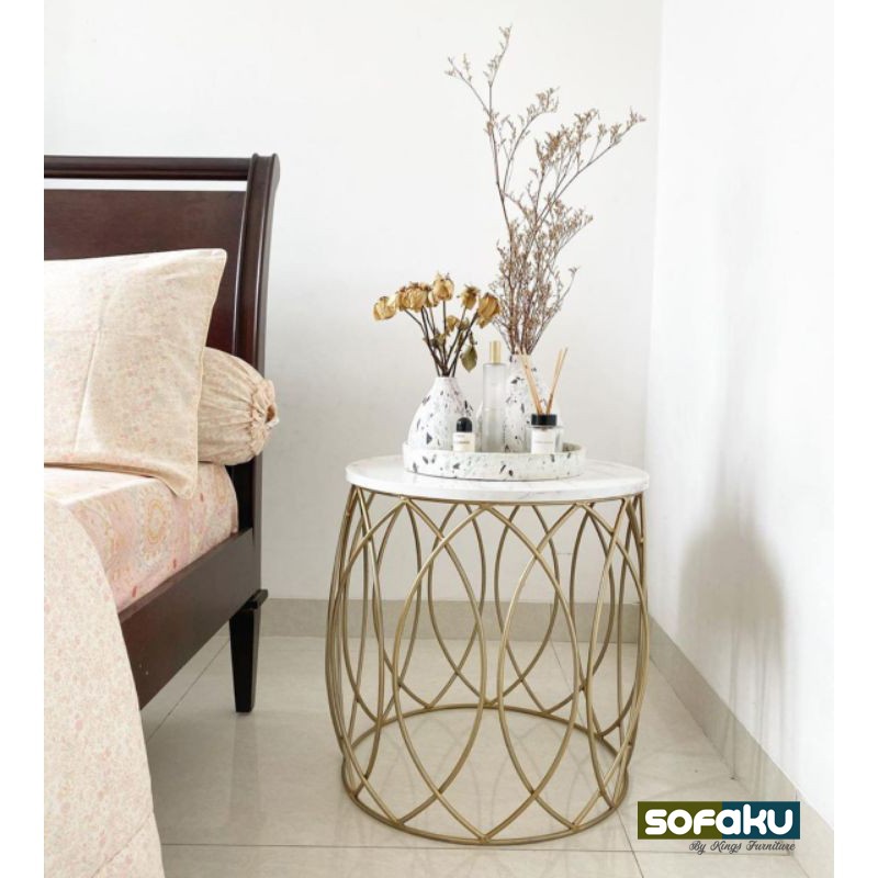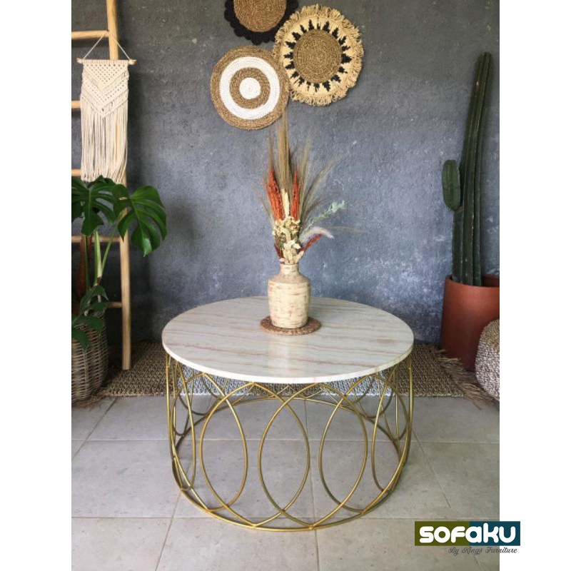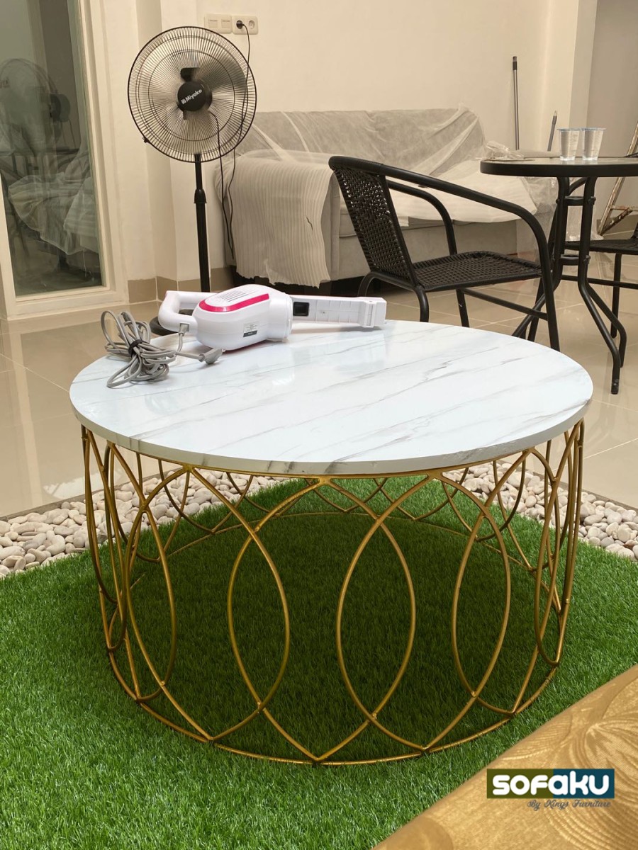 Meja tamu saat ini semakin beragam dengan banyak model dan pilihan, salah satunya Coffee Table ini yang berbentuk bulat mewah dengan aksen kaki emas (gold). Untuk mengisi perabot ruang tamu dengan model terbaru bisa meningkatkan mood dan estetika karena furnitur yang akan menemani dan mendukung segala aktivitas kita, baik itu sekadar minum kopi santai sambil membaca buku dan majalah.