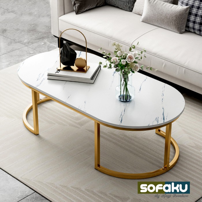 Meja tamu saat ini semakin beragam dengan banyak model dan pilihan, salah satunya Coffee Table ini yang berbentuk bulat mewah dengan aksen kaki emas (gold). Untuk mengisi perabot ruang tamu dengan model terbaru bisa meningkatkan mood dan estetika karena furnitur yang akan menemani dan mendukung segala aktivitas kita, baik itu sekadar minum kopi santai sambil membaca buku dan majalah.