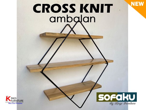 Cross knit ambalan melayang untuk menaruh koleksi panjangan, bunga, buku dengan cantik.