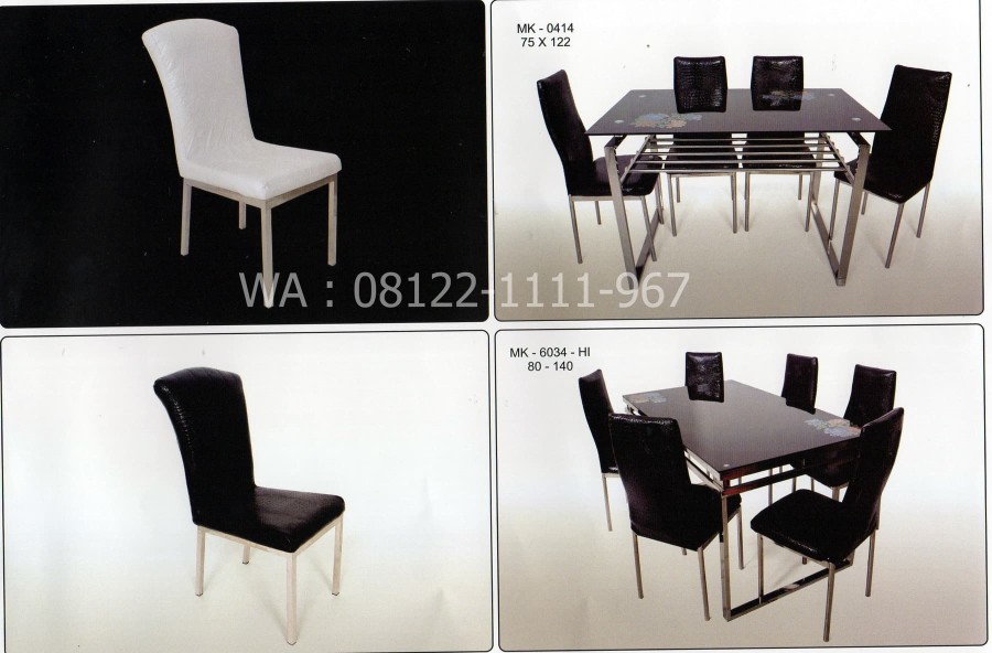 Kursi makan terbaru full stainless dengan keamanan tempered glass 12mm, tidak hanya enak diduduki namun memberikan tampilan berbeda dengan print motifs edition. Jadikan ruang makan anda semakin disenangi oleh keluarga.