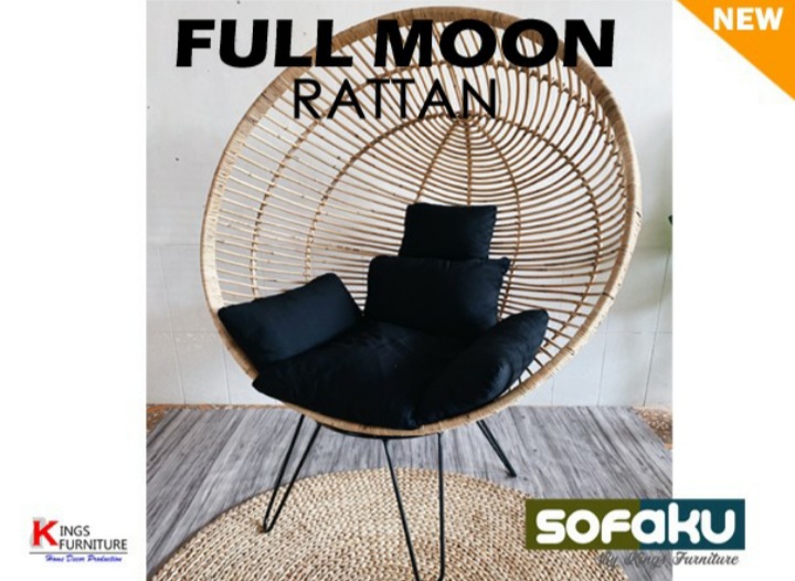 Rekomendasi produk kami yaitu Full Moon Rattan Chair yang tentunya terinspirasi dari interior berbagai model dunia yang sedang trend. Kursi full moon ini masuk dengan semua tema, bisa tema industrial, urban jungle, ataupun vintage.