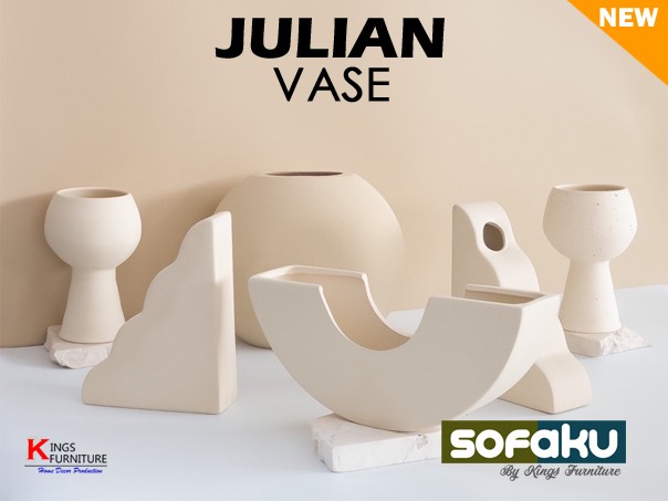Vas Bunga Julian untuk menambah manis penampilan meja dan bedside table. Dengan vas bunga yang estetik bisa meningkatkan mood dan membangun aura yang positif dalam ruangan sehingga tampilan furniture menjadi lebih indah.