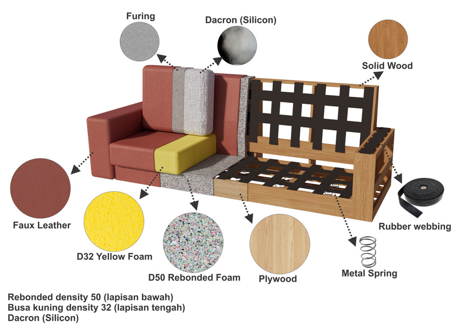– Bahan Kain/Kulit Sintetis Fabric Material Berkualitas (Suede, Ateja, Hikaron, Regency, dan pilihan Merk Lainnya)