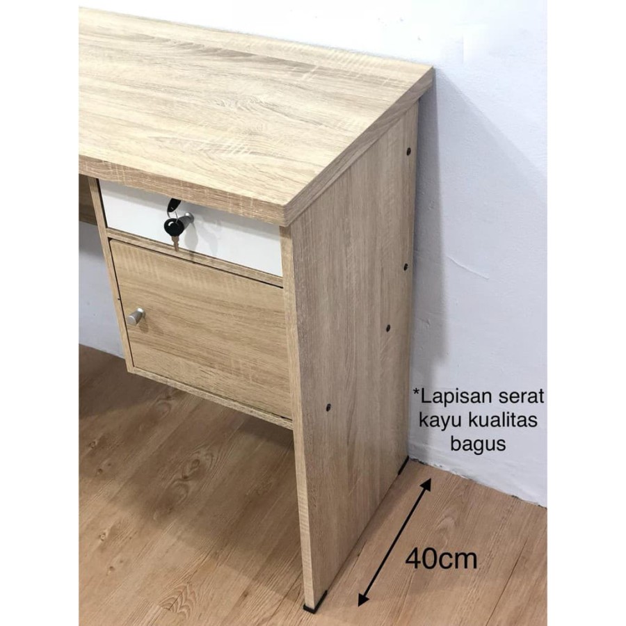 Meja MK-815 Series untuk meja kios , meja kantor dan meja minimalis belajar, dengan tekstur serat kayu berkualitas, sudah termasuk 2 laci dan kunci. Praktis ditempatkan diruangan mana saja dan mudah diinstalasi.