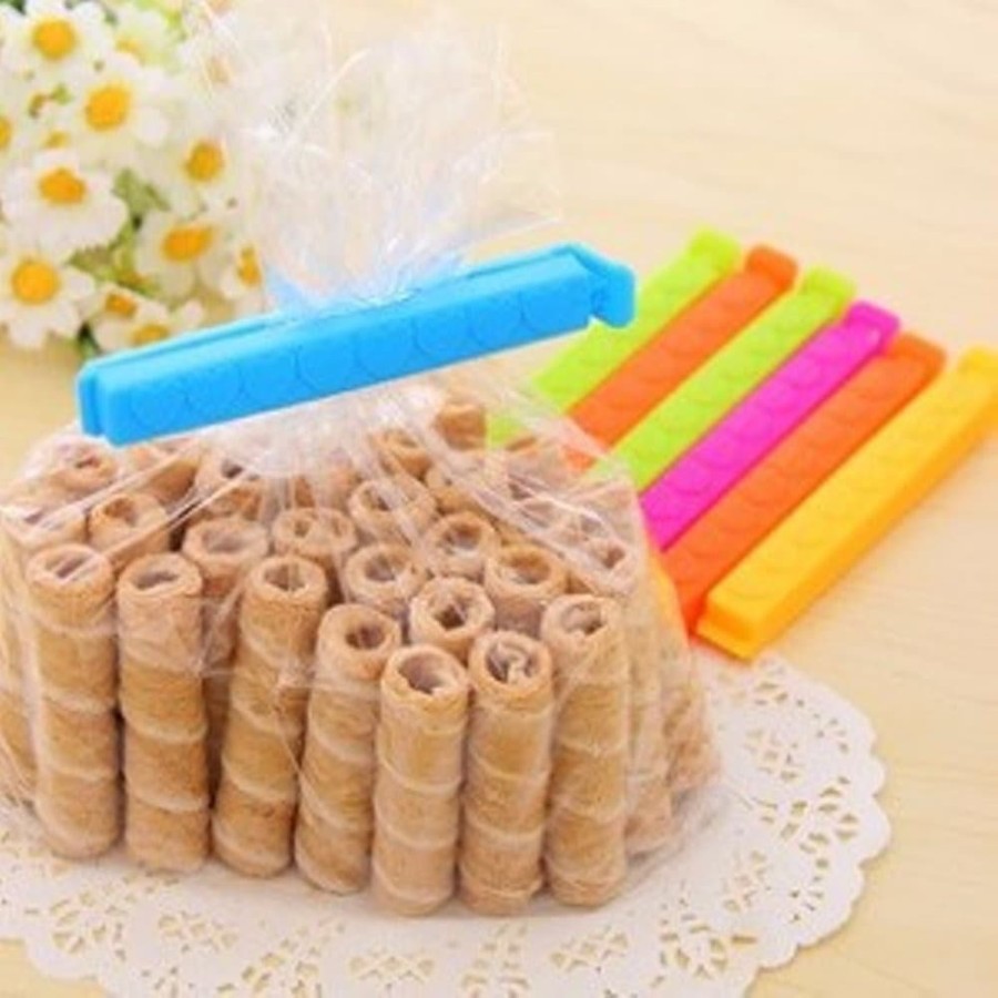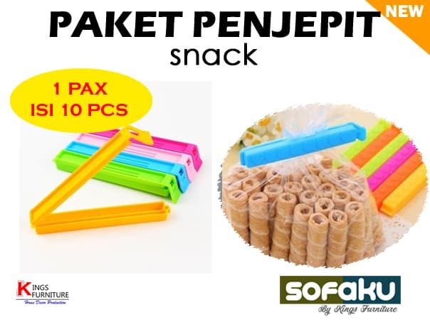 Kini menikmati cemilan tanpa khawatir tumpah saat disimpan dan praktis digunakan. Alat penjepit kemasan snack dengan warna lucu menarik membuat makanan snack / kerupuk tidak melempem dan bisa digunakan berulang kali.
