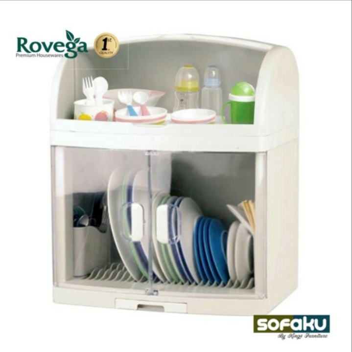 Rovega DCB-2561 Plado Dish Drainer rak piring serbaguna berbahan plasktik berkualitas yang didesain simple dan praktis. Rak piring ini dirancang kuat dan tahan lama untuk menyimpan peralatan makan dan minum serta dilengkapi dengan penutup kaca yang bening sehingga debu tidak mudah masuk ke dalam rak.