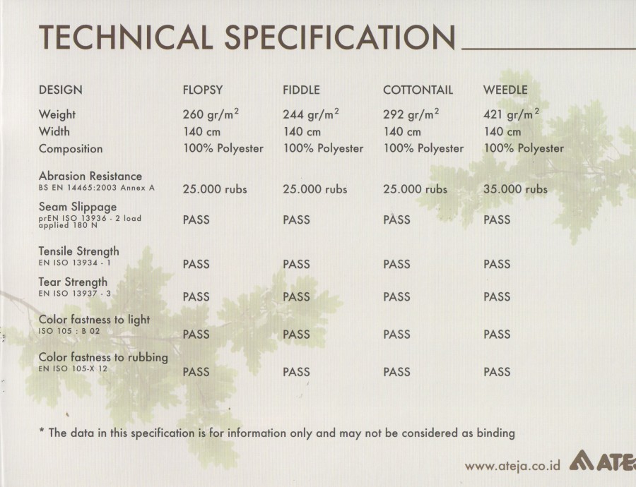 Kain fabric Weedle dari Redwood Collection by Ateja multifungsi yang ideal untuk furniture, fashion, tas, bantal sofa. Desain kain cocok untuk segala jenis sofa maupun kursi jati dan kayu.