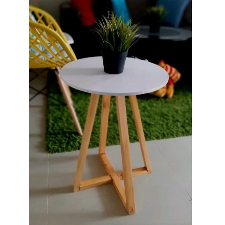 Coffee table mini untuk dekorasi samping sofa, sangat ringkas mudah dipindah ke sudut manapun. Berbahan kayu natural alami cocok untuk tema ruangan tropis.