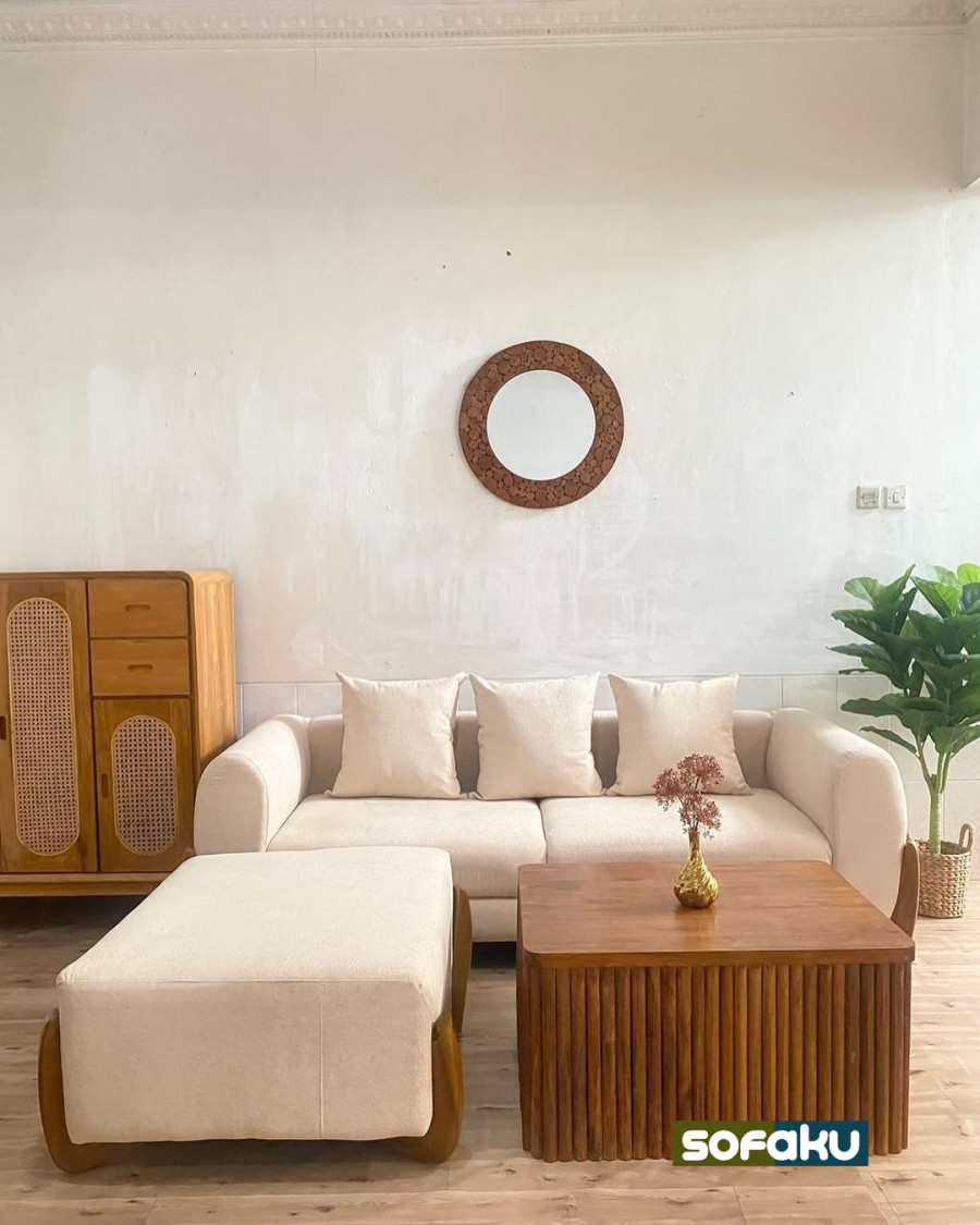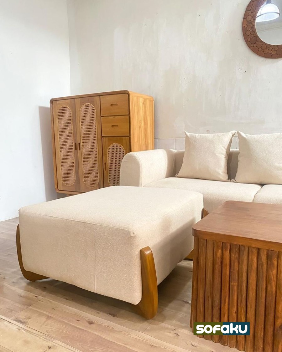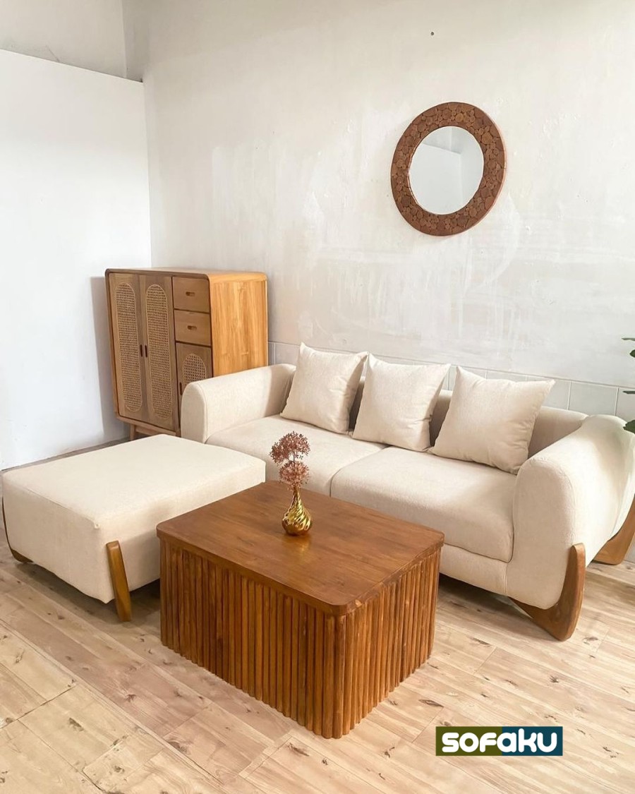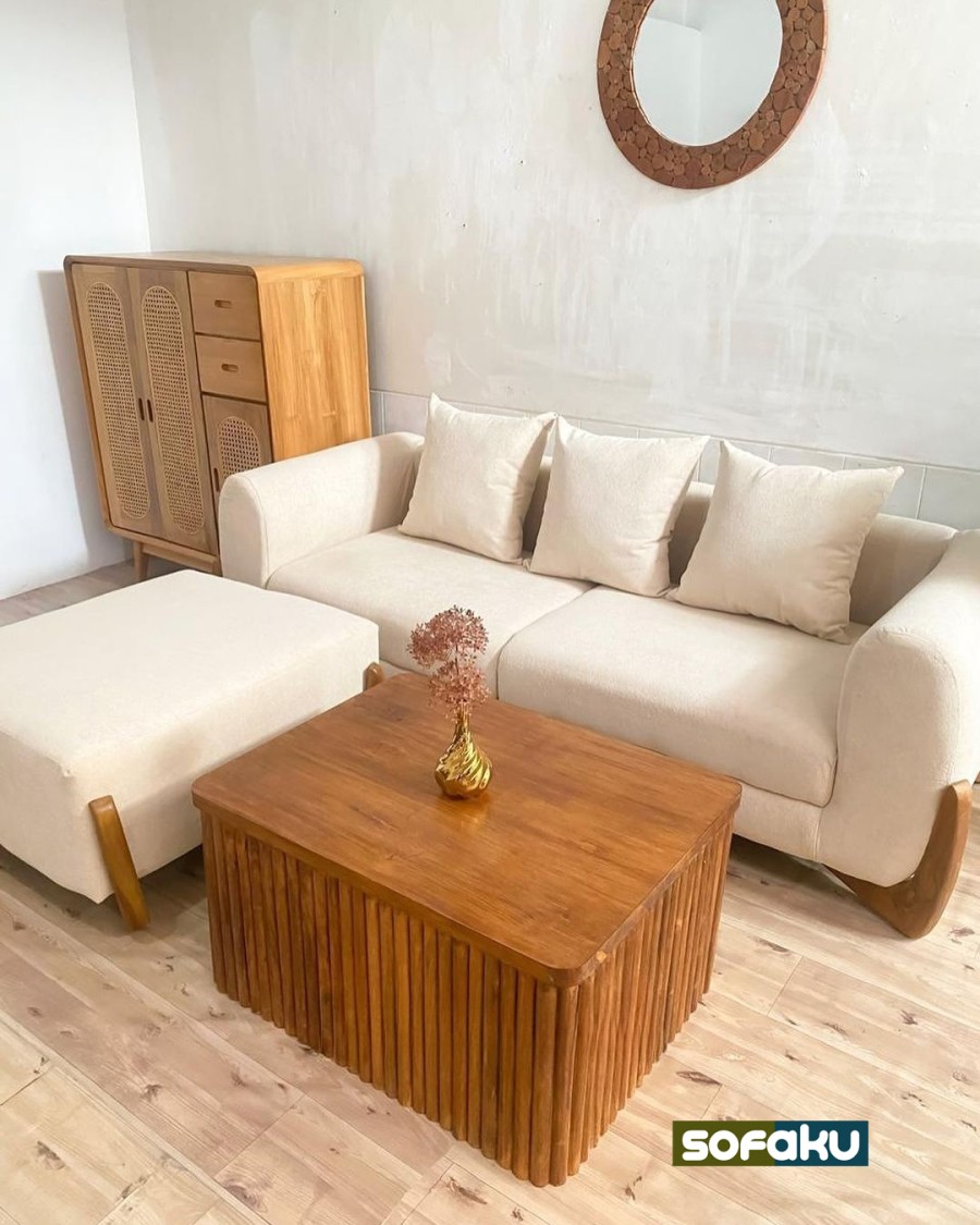 Sofa + Bench jika bahan mau Upgrade Boucle = Bahan berbulu domba boucle (+Rp 2.000.000)