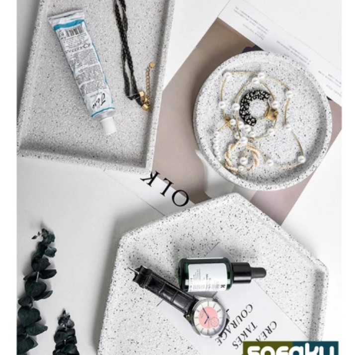 Trend scandinavian selalu menarik perhatian terutama bagi kaum Hawa! Terrazo Tray ini sangat manis dengan desain yang unik , bisa digunakan sebagai tempat menaruh aksesoris jewelry, anting, cincin, aromatherapy oil, maupun sebagai ornamen dekorasi di meja. Desainnya sangat light namun mewah bisa digunakan sebagai tray properti fotografi makanan.