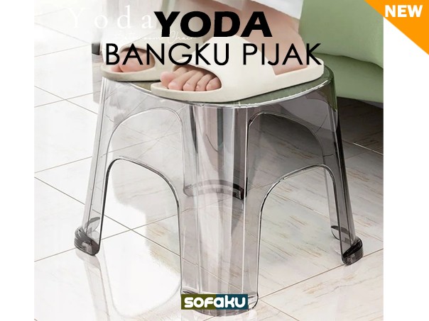 Bingung cari bangku pijakan yang kokoh dan estetis ? Yoda ini solusinya, selain kuat saat dipijak oleh kaki juga desainnya yang transparan terlihat lebih estetis saat disimpan di kamar mandi ataupun ruangan lainnya.